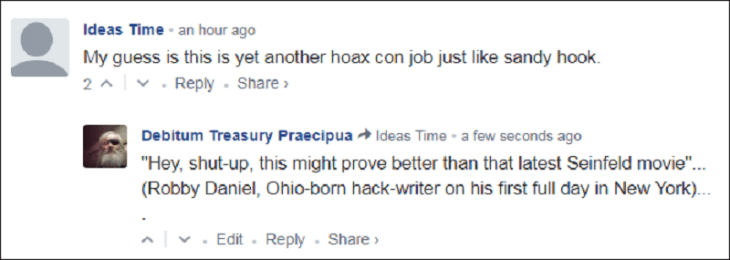 Now America as a whole is in a similar position to him, you or rather your political leaders told a bad joke onstage, you told a very bad joke onstage, matter of fact you told one of the worst jokes that’s ever been heard since Pontius Pilate asked Jesus Christ to walk across his swimming pool to prove that he really truly was the son of god or otherwise he’d have him crucified ~ Your joke was that untrained Cessna Pilot’s can fly commercial jets and that two jets can bring down 3 skyscraper’s by (Presumably) hitting 2 of them in the sweet spot and, well, it went down about as well as Kramer’s famous ‘Nigra’ rant onstage at the Laugh Factory so it’s time for a resurrection of truth and real off the cuff funny in America, it’s about time for the resurrection of your truth and thru that your humour, absolutely everything is and should be fair game again, if it’s true and it’s at all in any way uncomfortable, yet funny, or if it’s a lie and it’s really uncomfortable, yet funny, then it’s time to fess up and just tell the truth about it and laugh at yourselves like the rest of the world does behind your backs when you’re not looking ~ You might even find that 1 1\2 million dead Muslim’s will forgive you for the dishonest idiocy of that joke about Cessna Pilot’s, after all, they’re already dead, what the hell have they got to lose?