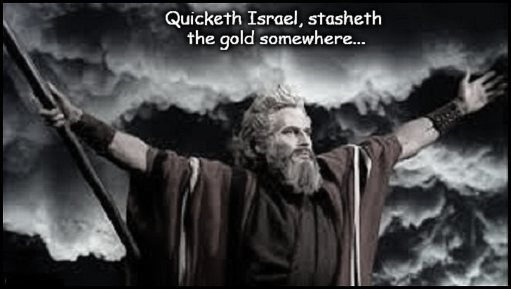 The one from Moses with the snakes and the death of the firstborn along with parting the Red Sea by the angry invisible omnipotent guy covered the theft of Egypt’s gold and jewels while the Islamic Cessna Pilot skyscraper story covered the theft of America’s credibility in the international world along with 2\3rds of their constitution and the theft of Iraq and Libya’s gold and the ongoing theft of Afghanistan’s multi trillion dollar Lithium ore reserves, so you gotta admit it’s all still pretty good bullshit even though neither Dubya nor Obama managed to turn a piece of wood into a snake or part the Red Sea either, tho Dubya did manage to get away with the gold from Iraq and Libya for his real masters…